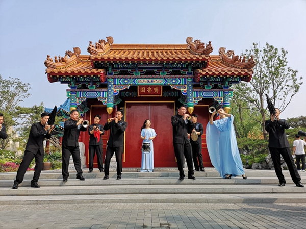 Artists from Shandong province stage traditional Chinese folk music performance at the Shandong Garden to celebrate the "Shandong Day" event of the International Horticultural Exhibition in Beijing.