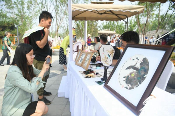 Folk artists from Shandong province showcase the province's traditional handicrafts at the "Shandong Day" event during the ongoing International Horticultural Exhibition in Beijing.