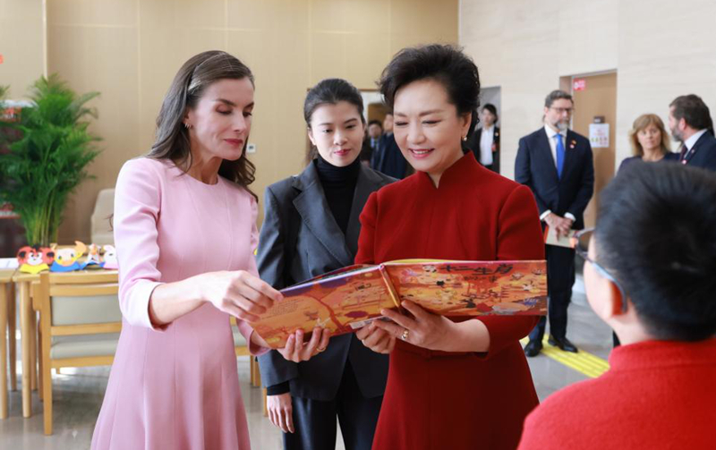 Peng Liyuan, Spain's Queen Letizia visit service center for ...