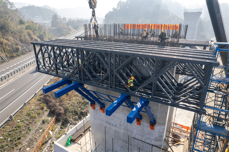 Staff members install a bridge bracket at a construction site in Shaoyang, Hunan province on Jan 1, 2025. [Photo/Xinhua]
