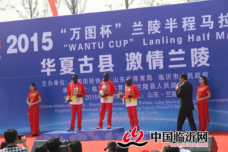 Linyi, Apr.26, 2015 ( Linyi China ) -- 2015 WANTU CUP Lanling Half Marathon was held in Lanling County of Linyi City, East China’s Shandong Province on April 25. All of men and women’s first three runners were from Africa, including men’s champion Silah Kipkembo Limo and women’s champion Alice Jemeli Timbilili both from Kenya.