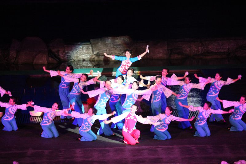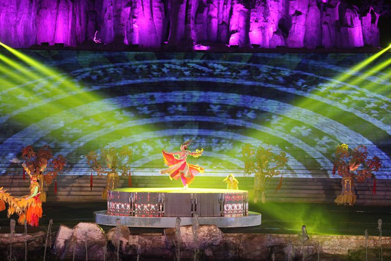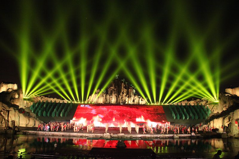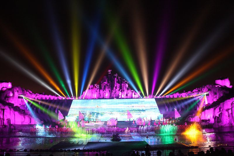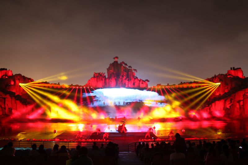 Mengshan Yishui adopts field performances and its main stage is built on the Huxin Island in Yihe River. With the main stage and the minor stage before the water covering more than 8,000 square meters, they can accommodate almost 2,000 spectators.