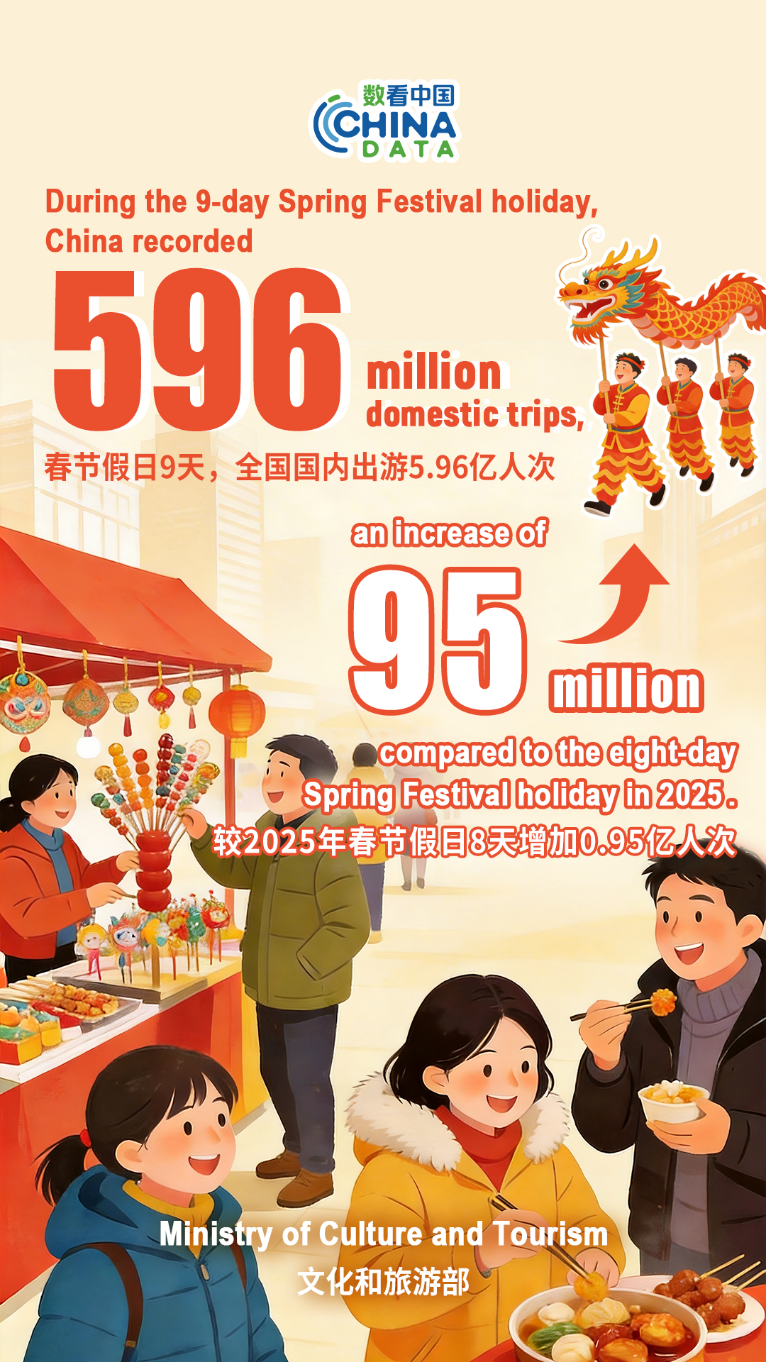 From bustling shopping districts packed with consumers to tourist attractions teeming with visitors, the just-concluded Spring Festival holiday recorded a series of striking figures highlighting the strong vitality of China's economy.