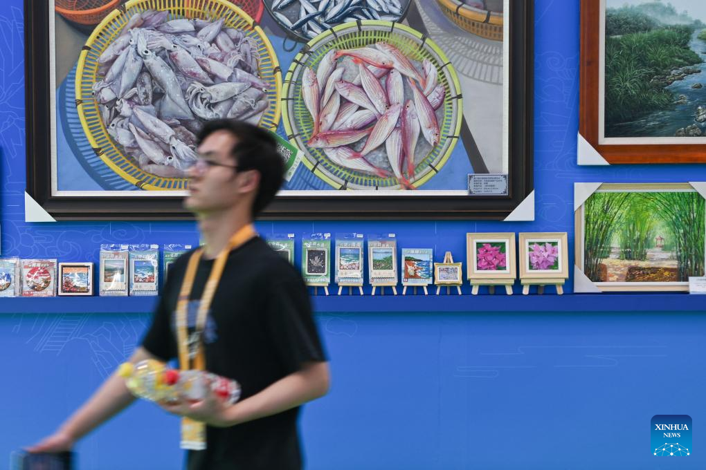 A man walks past creative refrigerator magnets and ornaments during the sixth China International Consumer Products Expo (CICPE) in Haikou, south China's Hainan Province, April 15, 2026. From intangible cultural heritage skills to original IPs with traditional Chinese cultural characteristics, Chinese brands blend tradition with modernity and showcase their charm at the ongoing CICPE, attracting the attention of many visitors. (Xinhua/Xin Yuewei)
