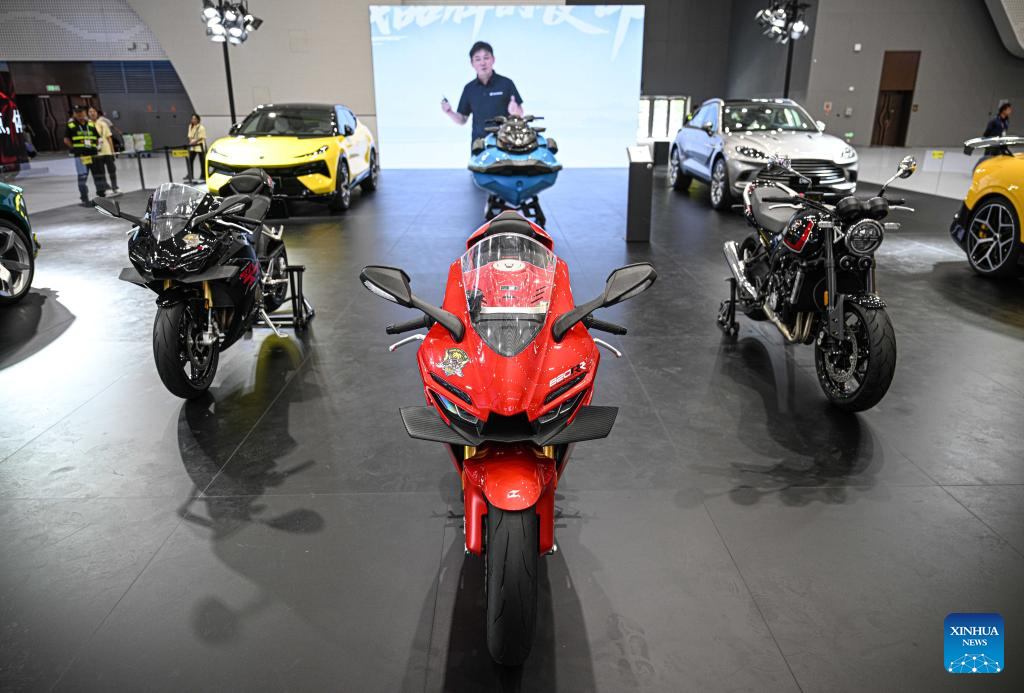 This photo taken on April 15, 2026 shows products of Chinese motorcycle maker ZXMOTO during the sixth China International Consumer Products Expo (CICPE) in Haikou, south China's Hainan Province. From intangible cultural heritage skills to original IPs with traditional Chinese cultural characteristics, Chinese brands blend tradition with modernity and showcase their charm at the ongoing CICPE, catching eyes of many visitors. (Xinhua/Pu Xiaoxu)