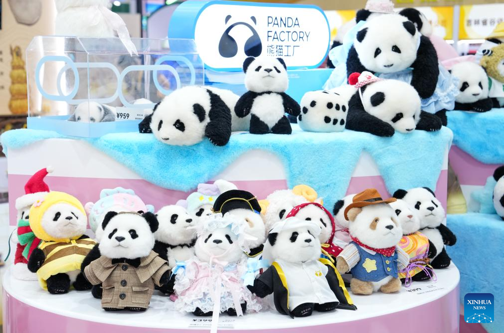 Panda dolls are pictured at the sixth China International Consumer Products Expo (CICPE) in Haikou, south China's Hainan Province, April 15, 2026. From intangible cultural heritage skills to original IPs with traditional Chinese cultural characteristics, Chinese brands blend tradition with modernity and showcase their charm at the ongoing CICPE, catching eyes of many visitors. (Xinhua/Yang Guanyu)