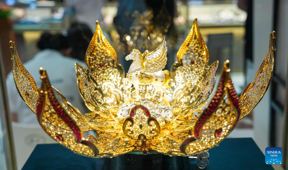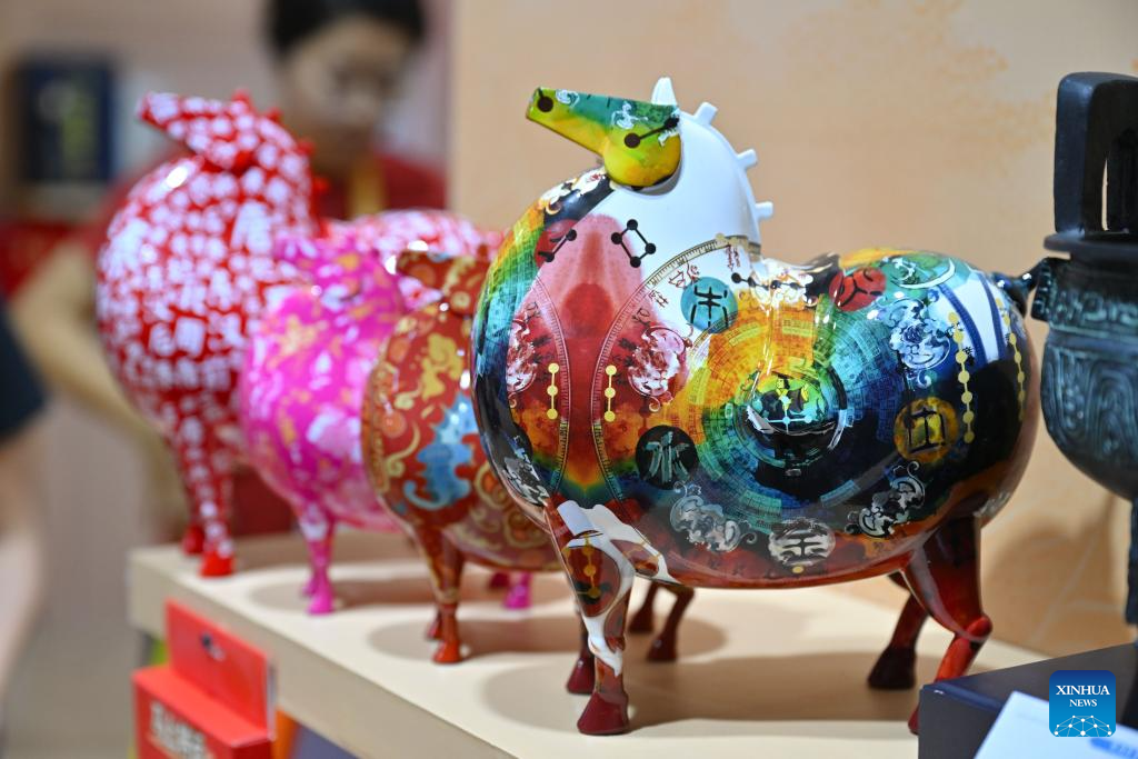 Horse-themed artifacts are pictured at the sixth China International Consumer Products Expo (CICPE) in Haikou, south China's Hainan Province, April 15, 2026. From intangible cultural heritage skills to original IPs with traditional Chinese cultural characteristics, Chinese brands blend tradition with modernity and showcase their charm at the ongoing CICPE, catching eyes of many visitors. (Xinhua/Guo Cheng)