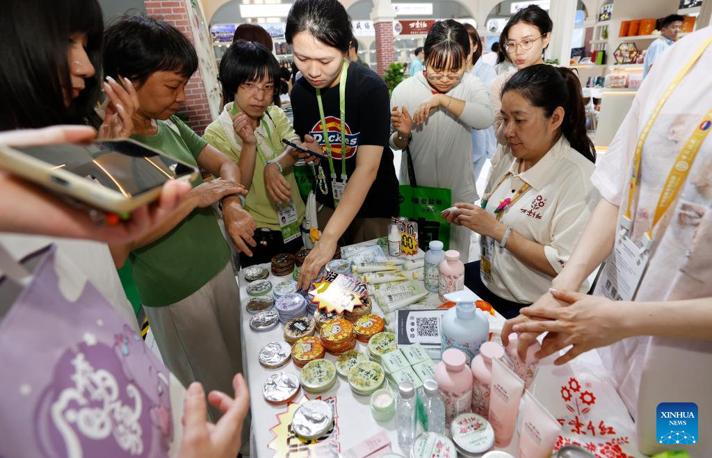 People buy cosmetics products from a Chinese brand at the sixth China International Consumer Products Expo (CICPE) in Haikou, south China's Hainan Province, April 15, 2026. From intangible cultural heritage skills to original IPs with traditional Chinese cultural characteristics, Chinese brands blend tradition with modernity and showcase their charm at the ongoing CICPE, catching eyes of many visitors. (Xinhua/Gao Jing)